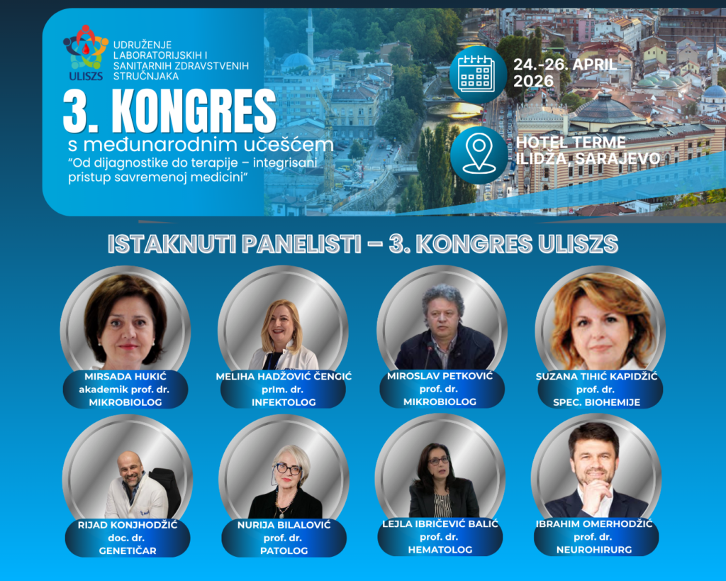 U okviru svečanog otvaranja 3. kongresa ULISZS, bit će održana panel diskusija koja će okupiti istaknute stručnjake iz različitih oblasti medicine i laboratorijske dijagnostike. Panel diskusija donosi interdisciplinarni pogled na savremene izazove zdravstva, s posebnim fokusom na povezivanje dijagnostike i terapije kroz integrisani pristup.